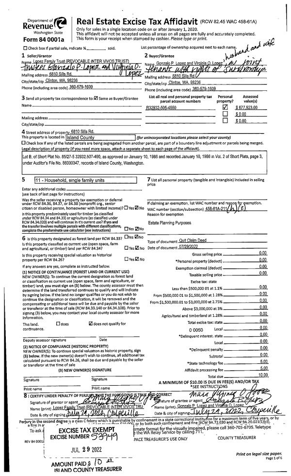 | Mailing Address: | THERESE VEACH 962 DOUBLE VIEW DR CAMANO ISLAND, WA 98282 | % Ownership: | 100.0000000000% |