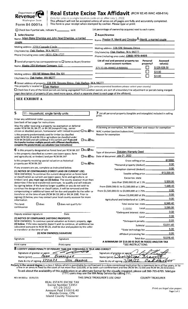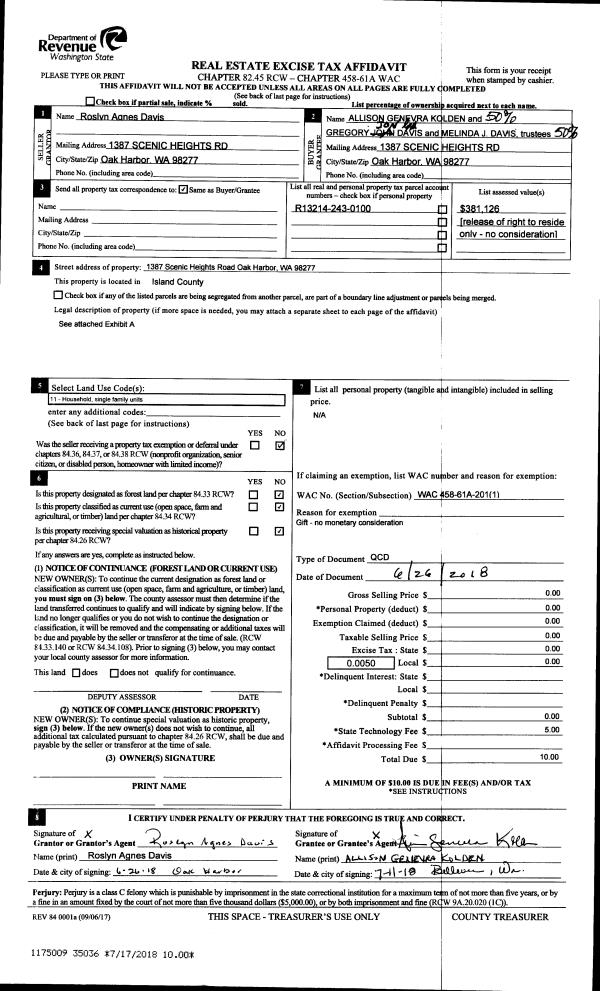 | Mailing Address: | 956 DOUBLE VIEW DR CAMANO ISLAND, WA 98282 | % Ownership: | 100.0000000000% |