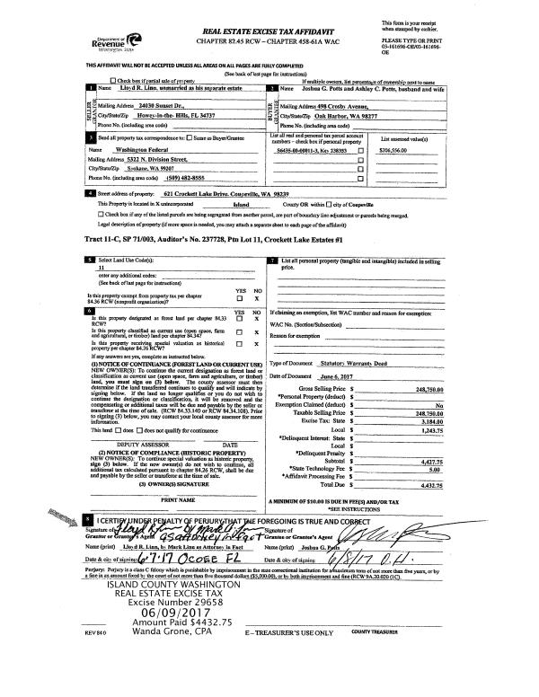 | Mailing Address: | TRUSTEE 2151 SW DILLARD LN OAK HARBOR, WA 98277-3179 | % Ownership: | 100.0000000000% |