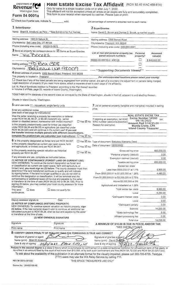 | Mailing Address: | ANNALEE D SWOBODA 878 MARGIE ANN DR CAMANO ISLAND, WA 98282 | % Ownership: | 100.0000000000% |
