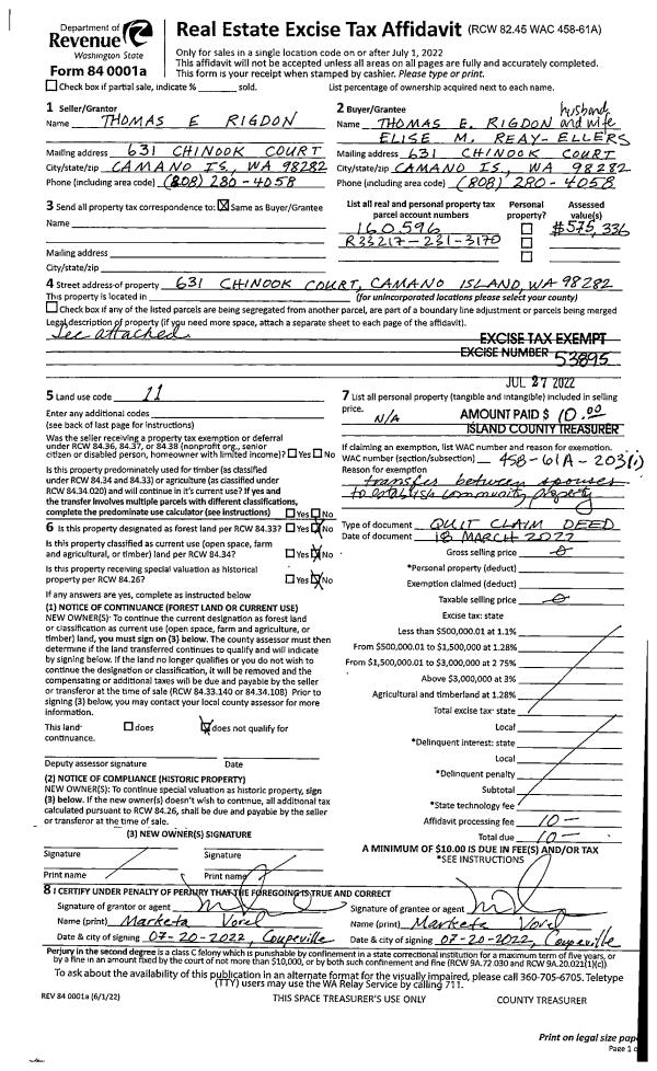 | Mailing Address: | KAREN K REIFEL MOLLISON 664 LEHMAN DR CAMANO ISLAND, WA 98282 | % Ownership: | 100.0000000000% |
