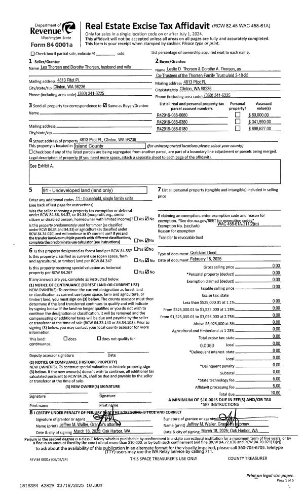 | Mailing Address: | AVIS E RECTOR TRUSTEES 1044 MONROE LANDING RD OAK HARBOR, WA 98277-8287 | % Ownership: | 100.0000000000% |
