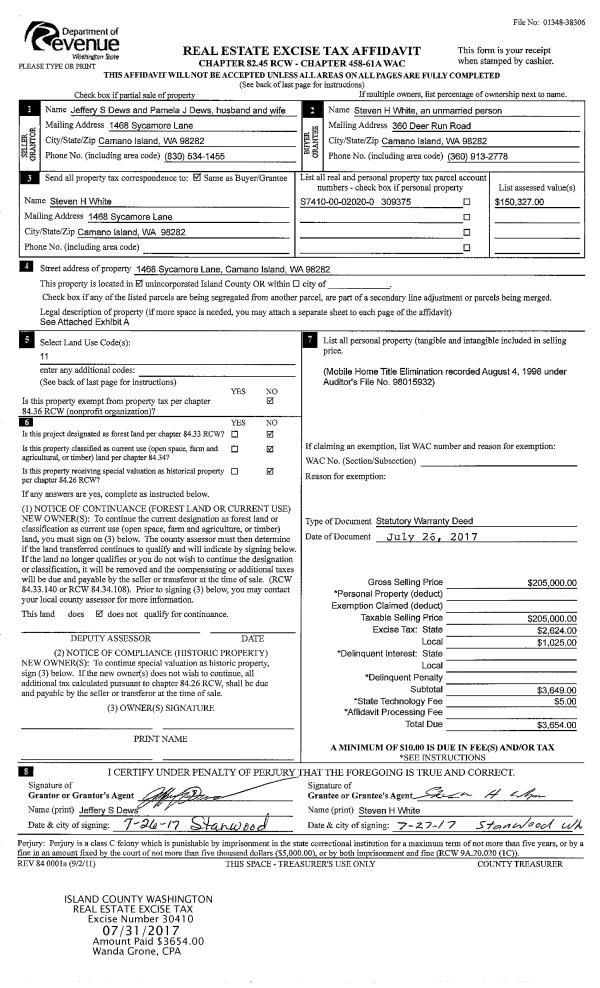 | Mailing Address: | SUSAN L WAISTE 550 WATERLINE LOOP CAMANO ISLAND, WA 98282 | % Ownership: | 100.0000000000% |