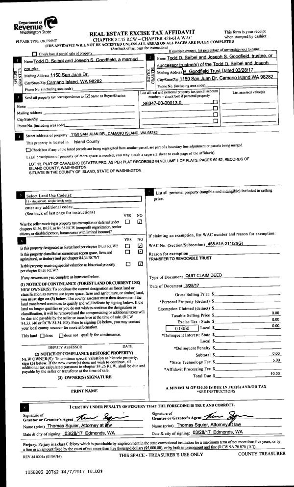 | Mailing Address: | TIMOTHY O BENTON TTEE 2230 KENNEDY LAGOON CT #1 COUPEVILLE, WA 98239 | % Ownership: | 100.0000000000% |