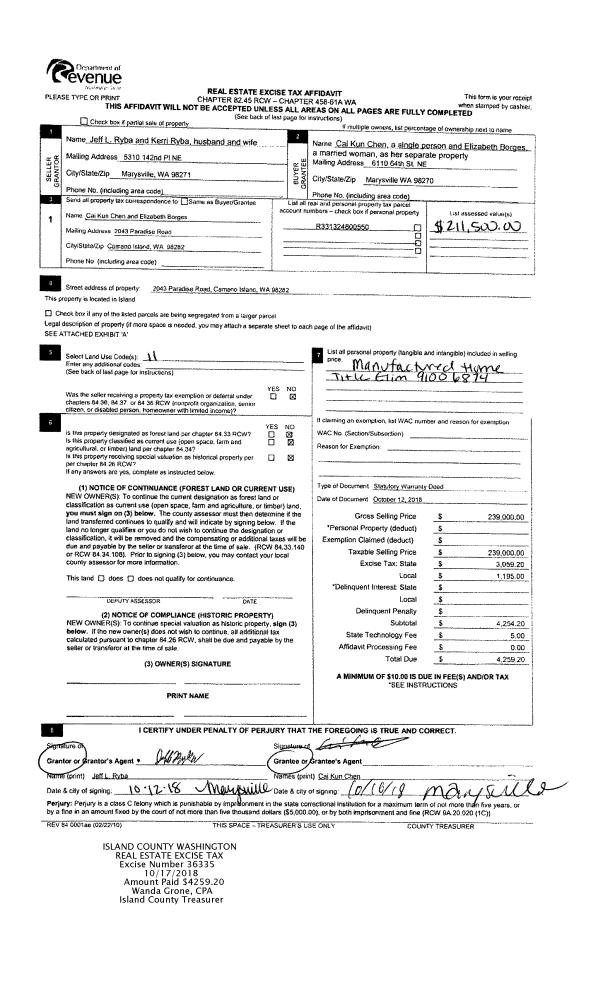 | Mailing Address: | 110 E SLEEPER RD OAK HARBOR, WA 98277 | % Ownership: | 100.0000000000% |