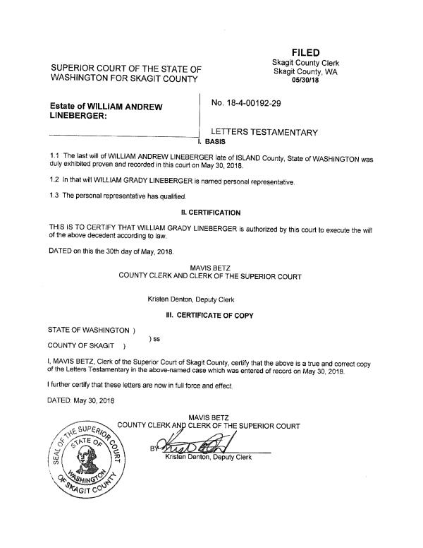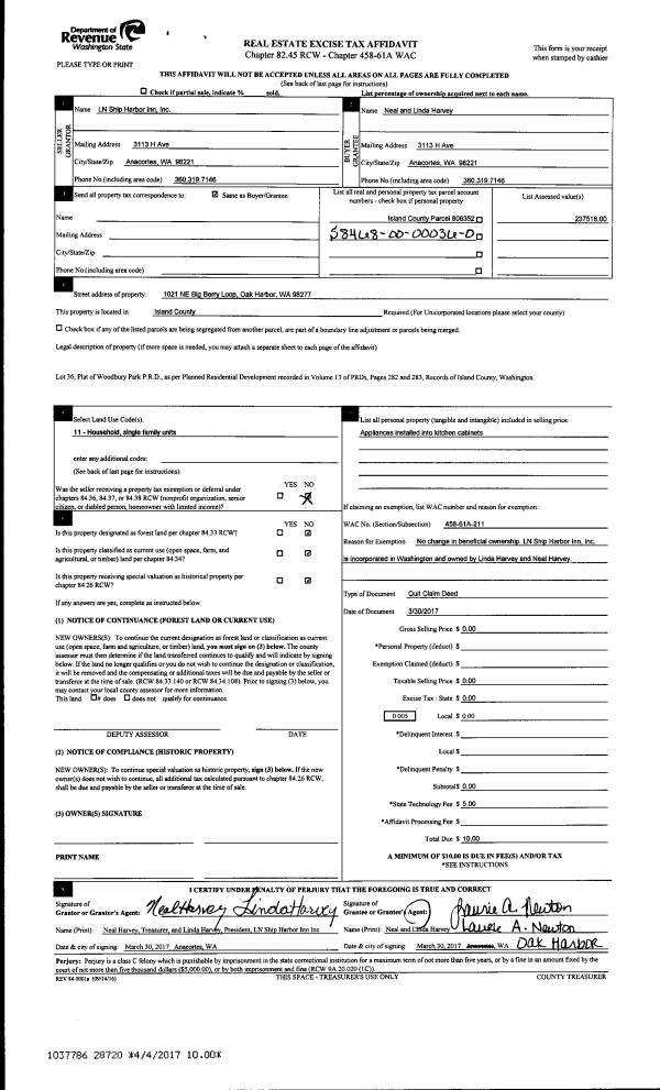 | Mailing Address: | SABINE ANDREA GAGNON 2384 LIBBEY RD COUPEVILLE, WA 98239 | % Ownership: | 100.0000000000% |