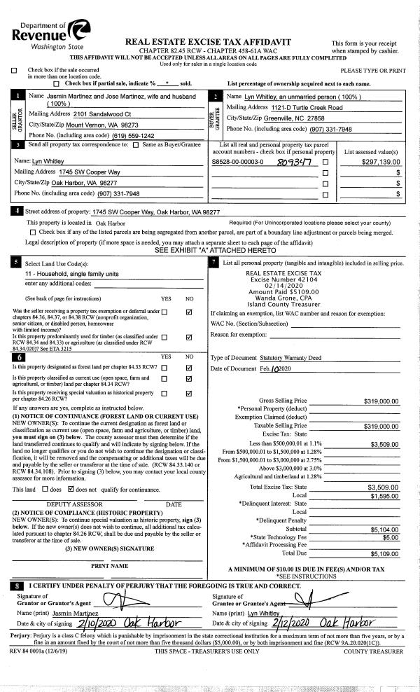 | Mailing Address: | 2118 WINTERHAWK LN COUPEVILLE, WA 98239 | % Ownership: | 100.0000000000% |