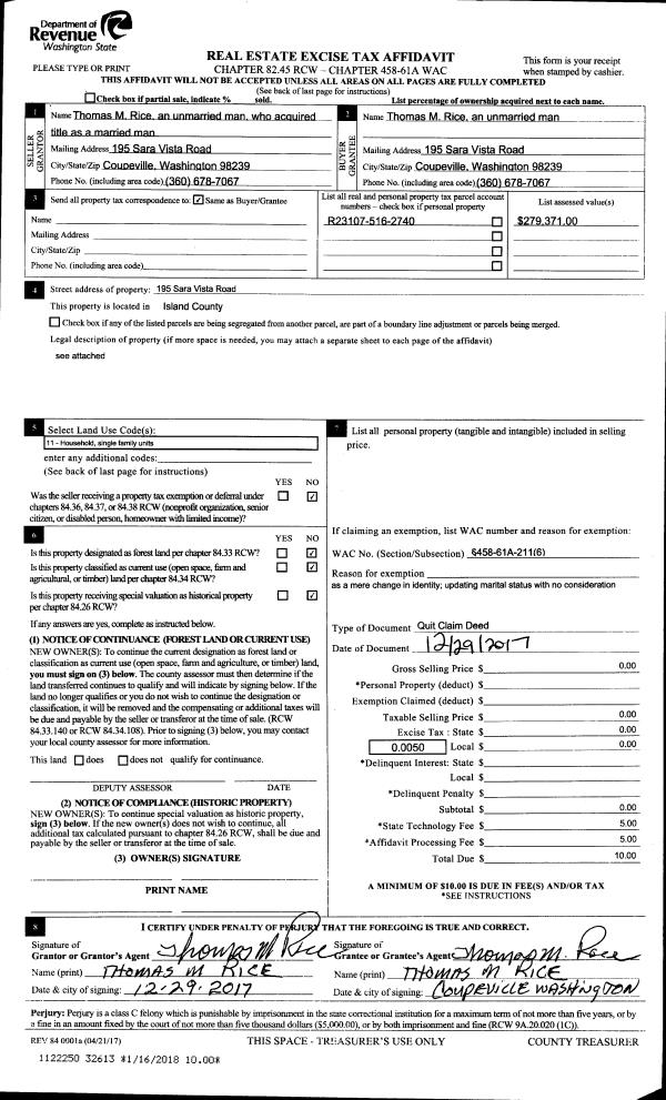 | 1 | 02/12/2018 | QCD | Quit Claim Deed | BOYDEN, STEVEN J | BOYDEN, STEVEN J | | | $0.00 | 33281 | 4440732 |