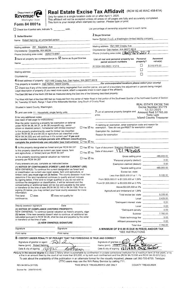 | Mailing Address: | 921 MOHAWK DR GREENBANK, WA 98253 | % Ownership: | 100.0000000000% |