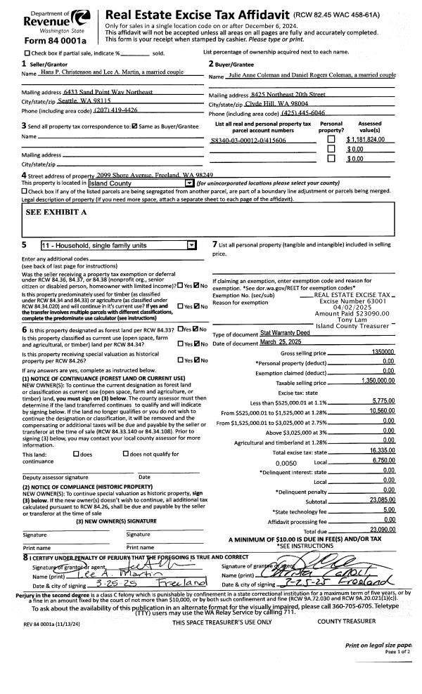 | 8 | 11/01/1981 | REC | Real Estate Contract | CENTRAL, WHIDBEY R | ISLAND, SAND & | | | $147,238.00 | 13512 | 0 |