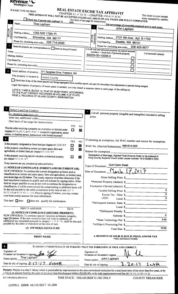 | Mailing Address: | MARIA M DIAZ RAMIREZ 662 NW ENSIGN DR OAK HARBOR, WA 98277 | % Ownership: | 100.0000000000% |