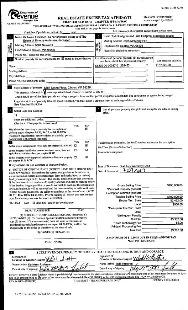| 1 | 08/14/2019 | WD | Warranty Deed | SAHLI, THOMAS F | HIROYASU, SCOTT TAMOTSU | | | $377,500.00 | 39910 | 4469530 |