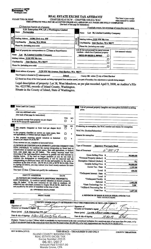 | 2 | 05/19/2017 | WD | Warranty Deed | UPTEGROVE, ARLETTA | WHIDBEY CAMANO LAND TRUST | | | $0.00 | 29572 | 4423617 |