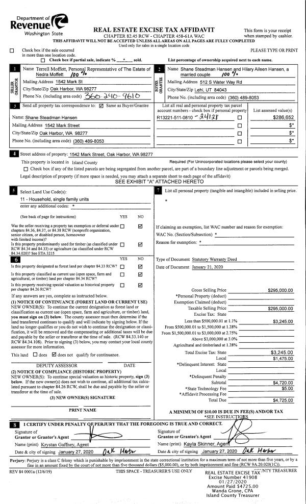 | 4 | 05/24/2000 | WD | Warranty Deed | AMERICAN GEN HOME EQTY INC, | WHIDBEY DEVELOPMENT, LLC, | | | $24,000.00 | 2007 | 20009586 |