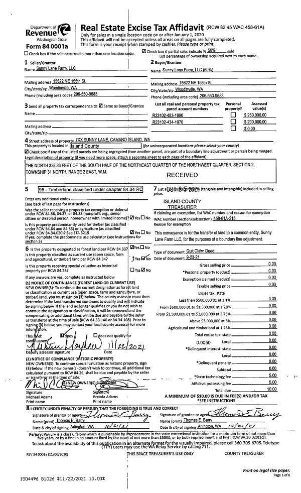 | Mailing Address: | 5053 PANAVIEW CT FREELAND, WA 98249 | % Ownership: | 100.0000000000% |