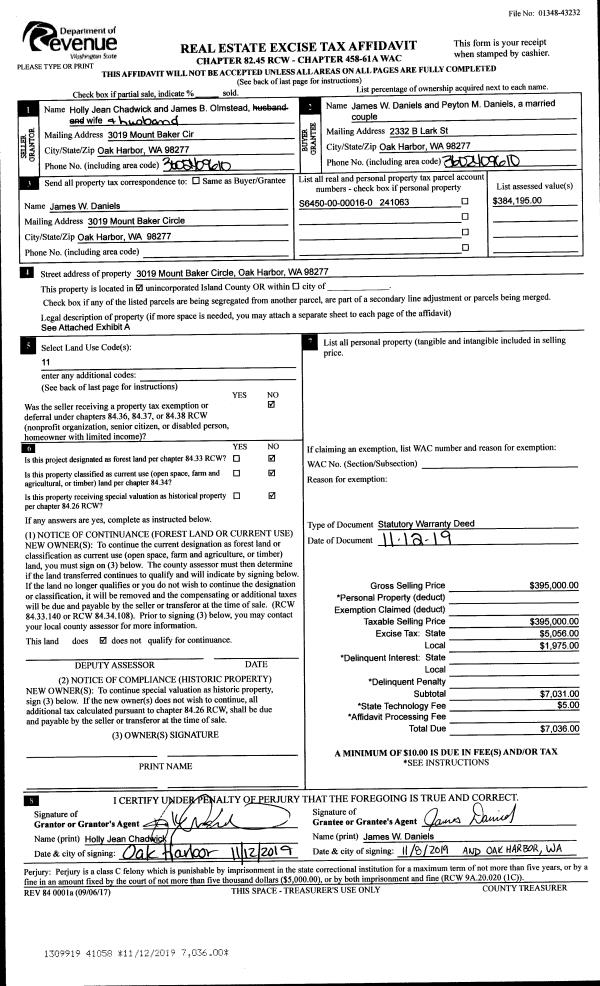 | Mailing Address: | JENNIFER JOAN MCGINNIS 4942 HARBOR HILLS DR FREELAND, WA 98249 | % Ownership: | 100.0000000000% |
