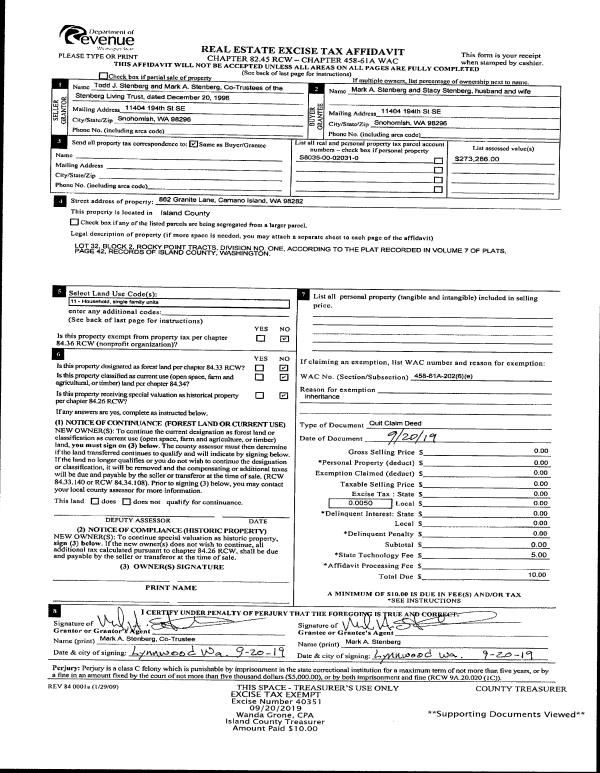 | 1 | 09/23/2008 | 5 | DNU - Marriage License/Name Change | BISHOP, DOUGLAS L | HOLMES HARBOR EXECUTIVE, LLC, | | | $0.00 | 82819 | 4239913 |