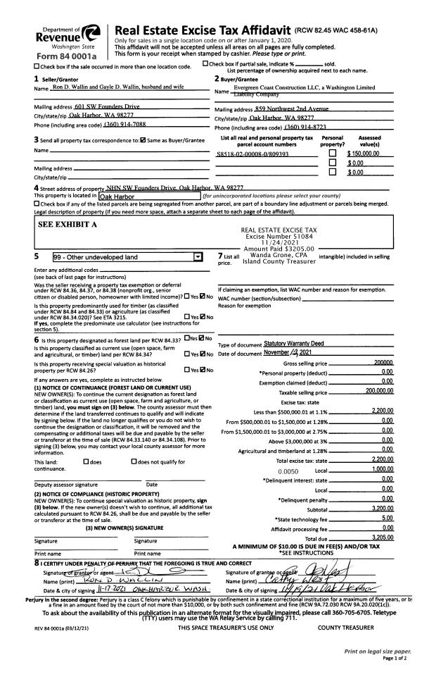 | 5 | 02/09/2006 | WD | Warranty Deed | ISLAND CONSTRUCTION INC, | MADSEN, GERALD ALLEN | | | $60,000.00 | 60550 | 4161975 |