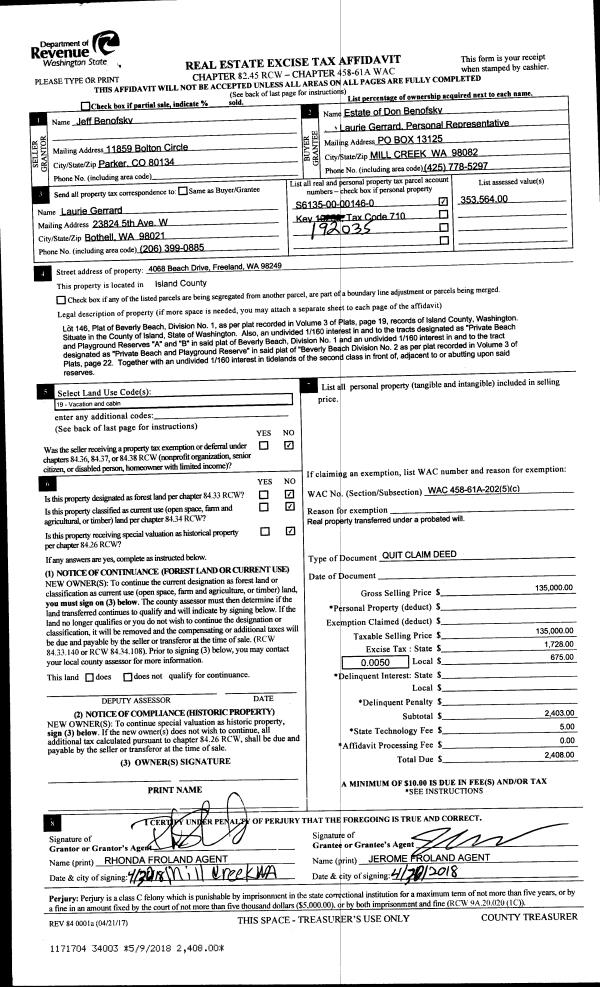| Mailing Address: | 5010 CHIPSHOT WAY FREELAND, WA 98249-9775 | % Ownership: | 100.0000000000% |