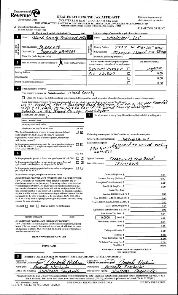 | SWHIDPRBD | P & R S Whidbey BOND | 0.0152817568 | $602,675 | $602,675 | $9.21 | | |