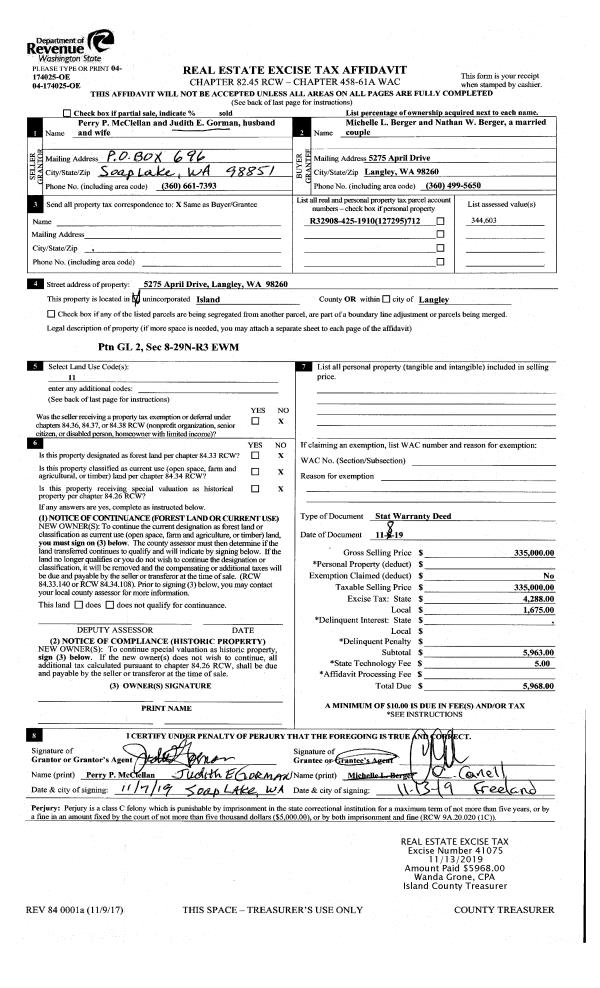| SWHIDPRMT | P & R S Whidbey GEN | 0.2053334452 | $110,000 | $110,000 | $22.59 | | |