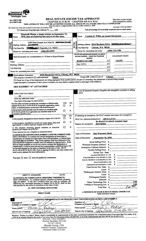 | Mailing Address: | 1405 COMMODORE PL FREELAND, WA 98249 | % Ownership: | 100.0000000000% |