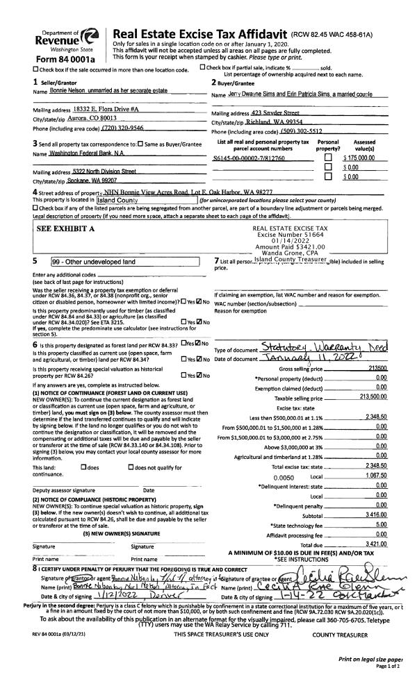 | 4 | 02/01/1995 | WD | Warranty Deed | STAVE, KNUT N | SHELLEY, BRIAN & | | | $10,000.00 | 50684 | 95003189 |