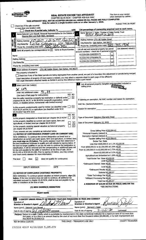 | 3 | 10/21/2004 | BLA | DNU - Boundary Line Adjustment | HOLMES, HARBOR A | HOLMES HARBOR ASSOC LP, | | | $0.00 | 70381 | 4058547 |