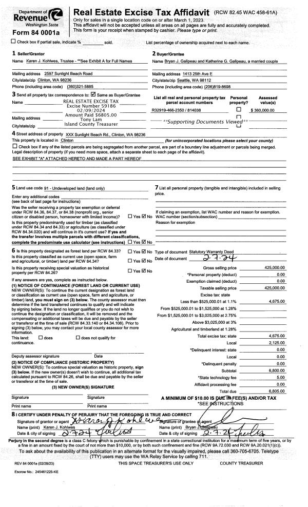 | 1 | 09/12/2023 | WD | Warranty Deed | ONYXX CAPITAL 1 LLC | HOLMES HARBOR SEWER DISTRICT | | | $0.00 | 57992 | 4564768 |