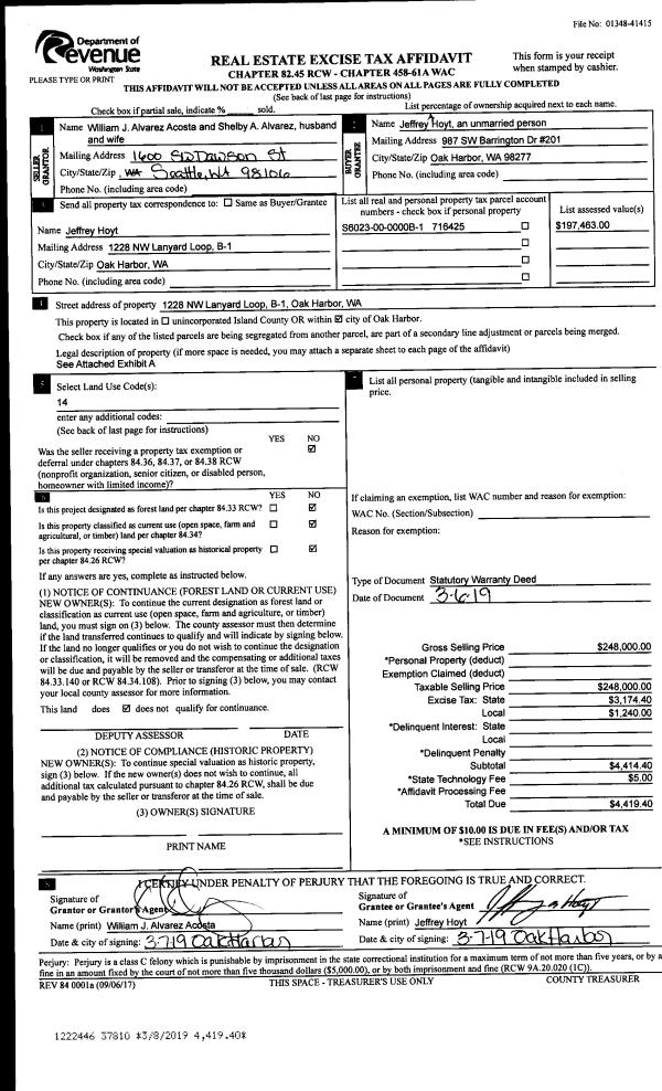 | 7 | 12/01/1995 | WD | Warranty Deed | HOLMES, HARBOR A | HOLMES, HARBOR H | | | $0.00 | 54314 | 95019942 |