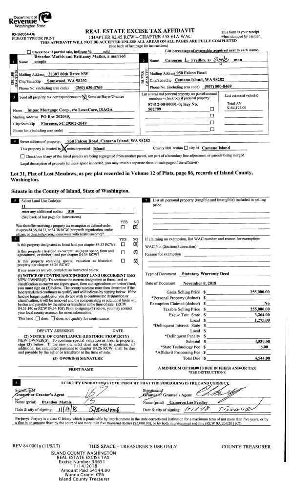 | 1 | 10/30/2018 | WD | Warranty Deed | KINYOUN, JOHN | FAY, KAREN B | | | $25,000.00 | 36497 | 4454353 |