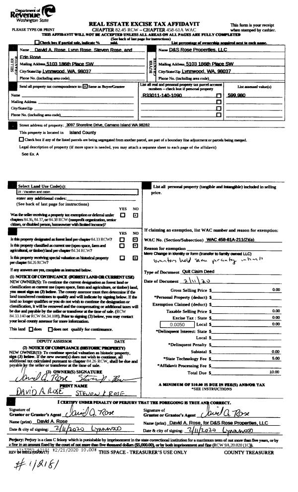 | Mailing Address: | 4915 REINDEER RD FREELAND, WA 98249 | % Ownership: | 100.0000000000% |