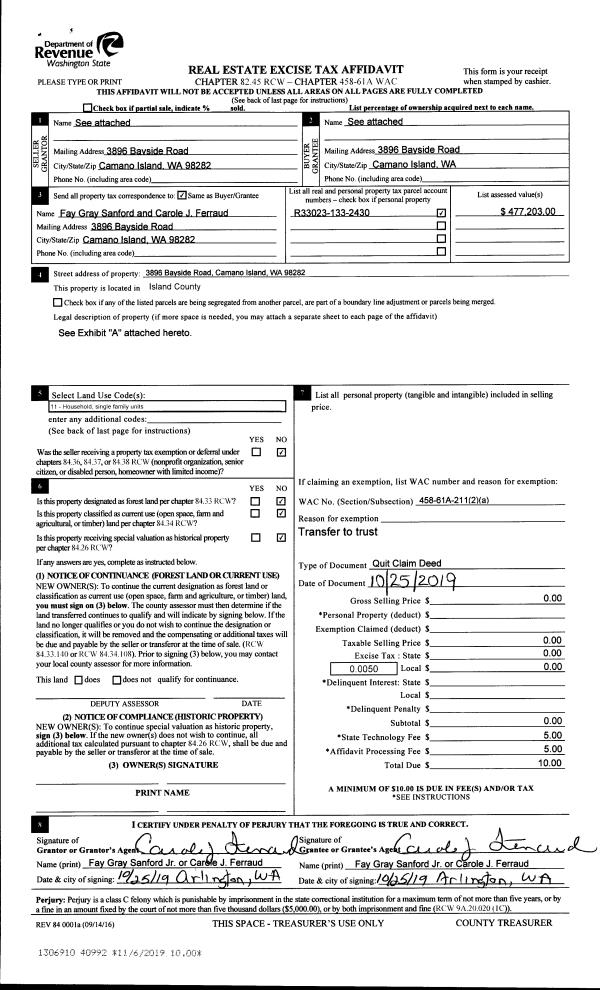 | Mailing Address: | 1353 WINSTON RD FREELAND, WA 98249 | % Ownership: | 100.0000000000% |