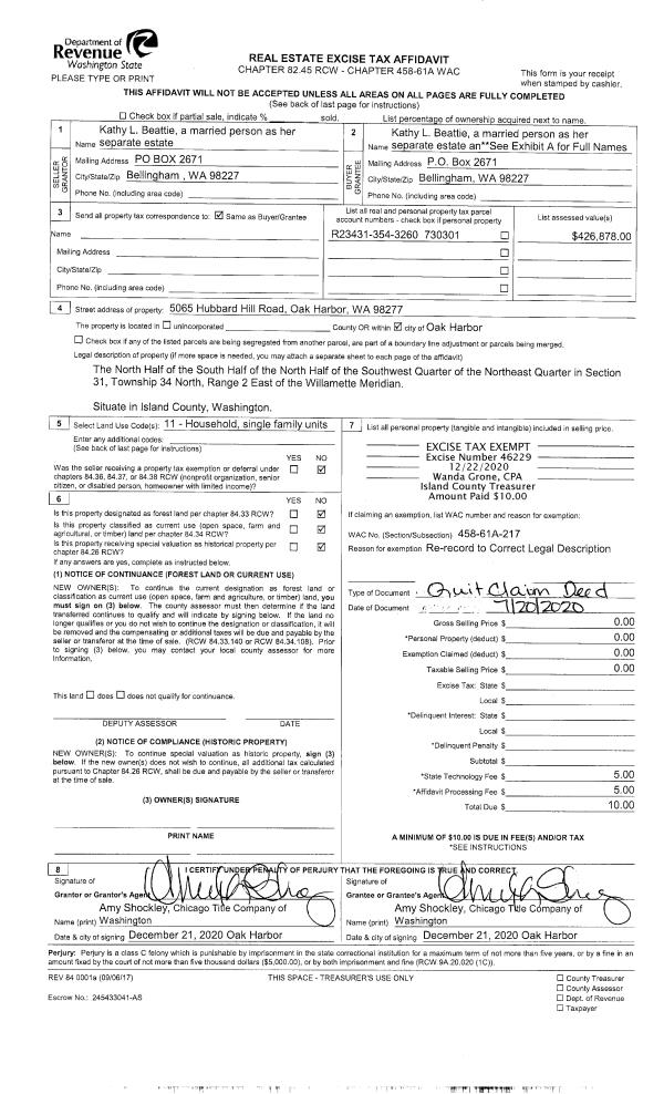 | Mailing Address: | PO BOX 1464 FREELAND, WA 98249-1464 | % Ownership: | 100.0000000000% |