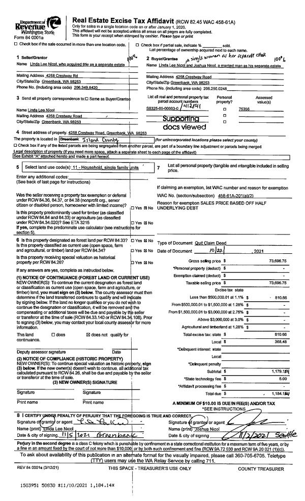 | 3 | 04/06/2021 | QCD | Quit Claim Deed | SWEARINGER, R E & R A | SWEARINGER, ROBERT A | | | $0.00 | 48265 | 4519506 |
