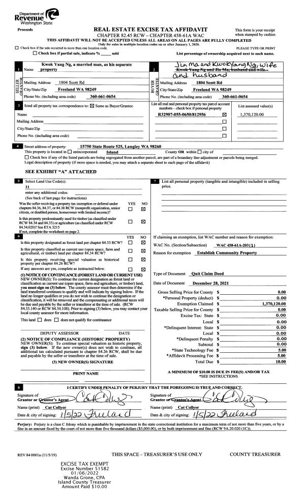 | Mailing Address: | 5325 BERCOT RD FREELAND, WA 98249 | % Ownership: | 100.0000000000% |