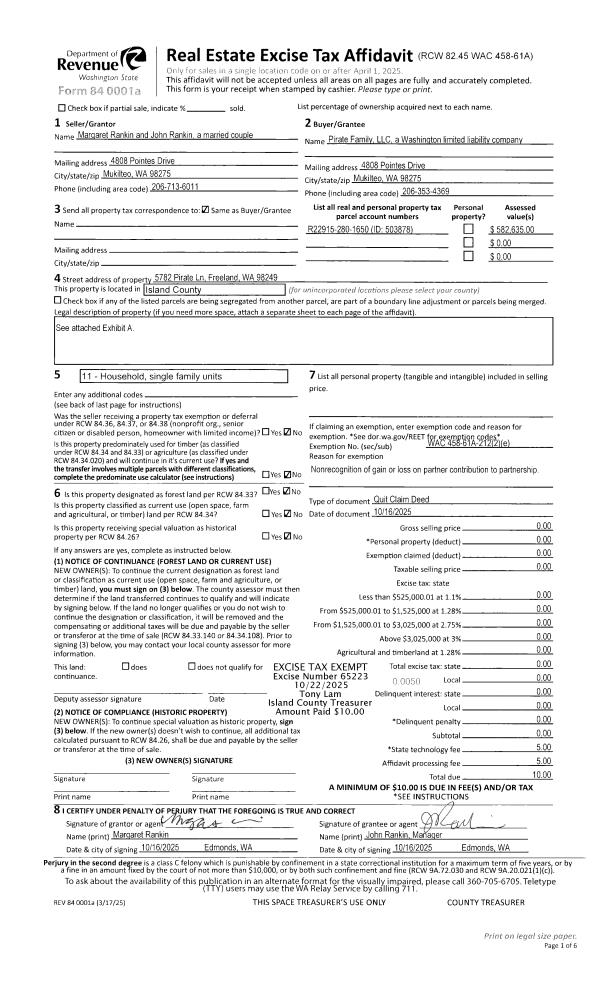 | Mailing Address: | 4309 GARDEN GROVE LN GREENBANK, WA 98253 | % Ownership: | 100.0000000000% |