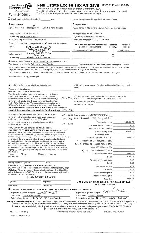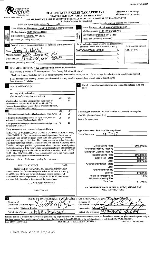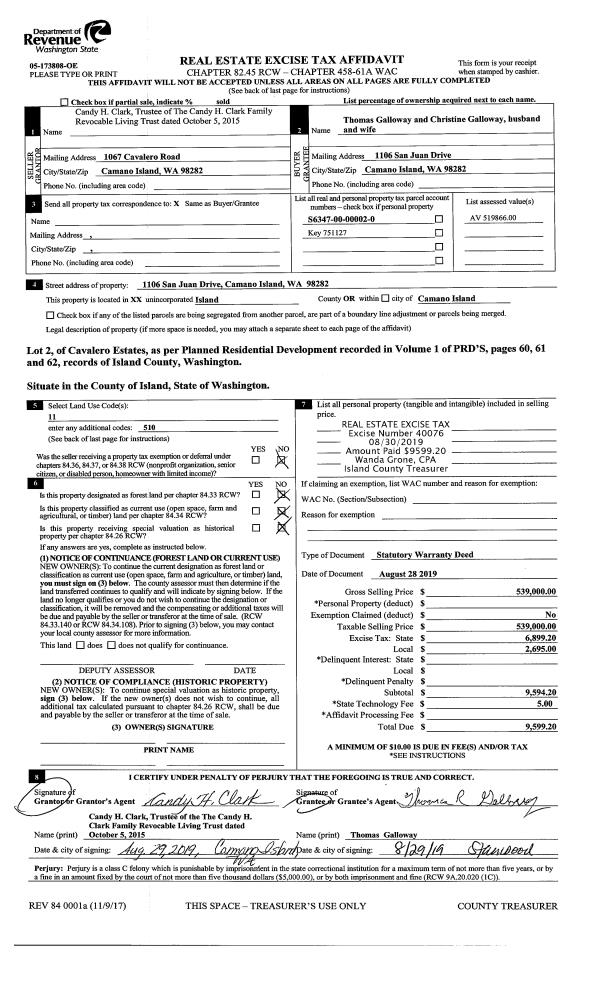 | Mailing Address: | ALOHI LILIANA ELLIOT 221 PARK AVE LANGLEY, WA 98260 | % Ownership: | 100.0000000000% |