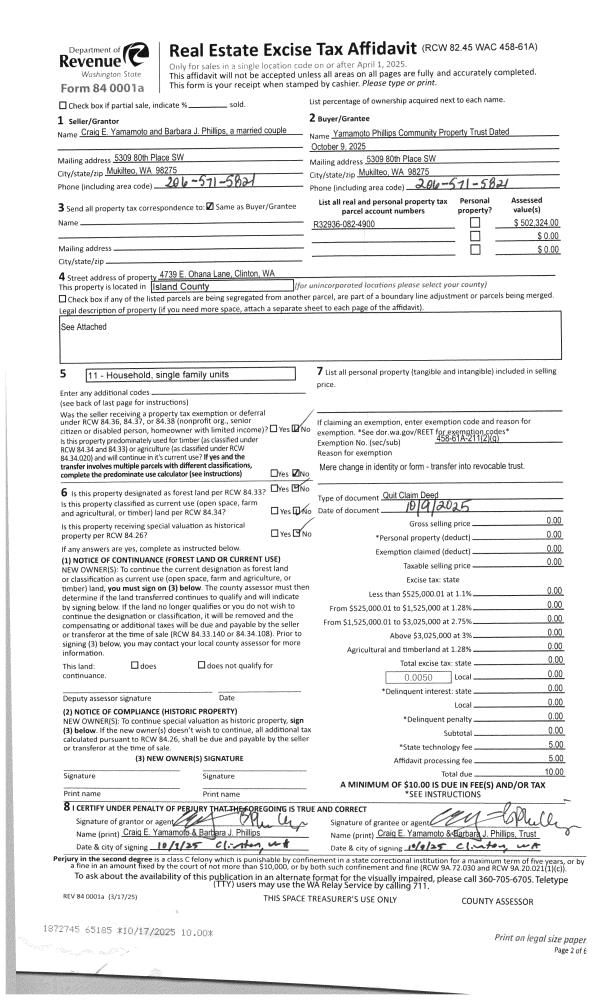 | Mailing Address: | 4365 WALDEN LOOP GREENBANK, WA 98253-6323 | % Ownership: | 100.0000000000% |