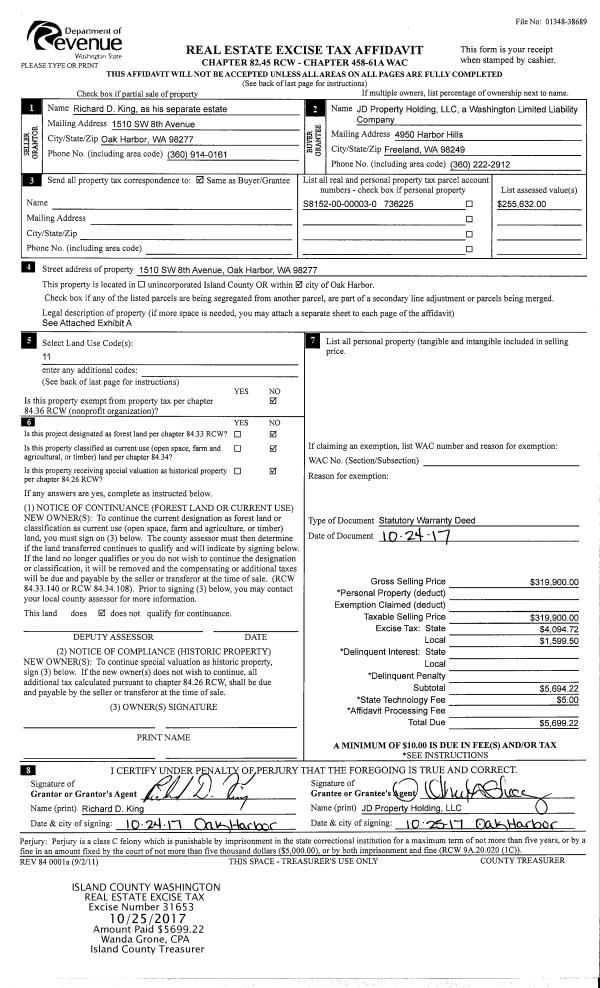 | Mailing Address: | VIRGINIA B IMLAH 5009 BAKERVIEW ROAD OAK HARBOR, WA 98277 | % Ownership: | 100.0000000000% |