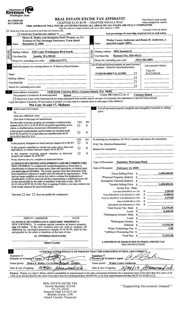 | Mailing Address: | 596 FORREST WAY CAMANO ISLAND, WA 98282 | % Ownership: | 100.0000000000% |