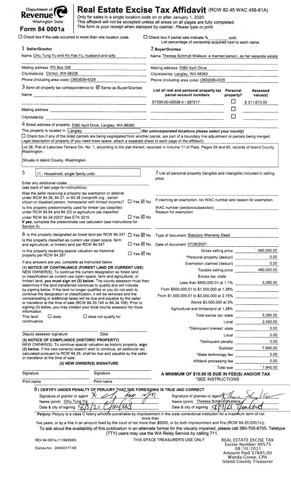 | Tax Area: | 710 - APPRAISER-S Whid Schl Dist, outside Langley, improved & 1 acre or less | Land Use Code | 11 |