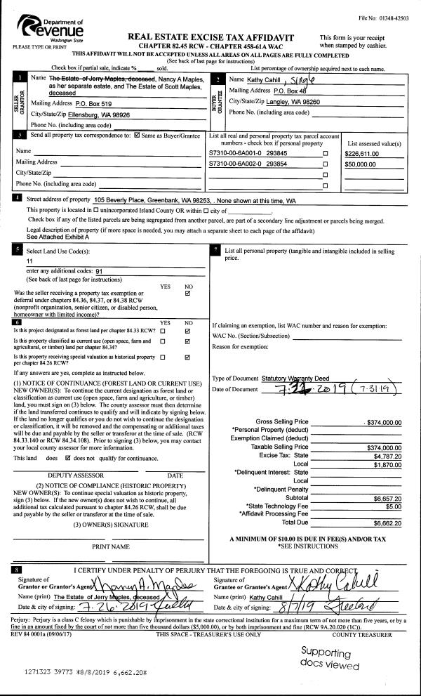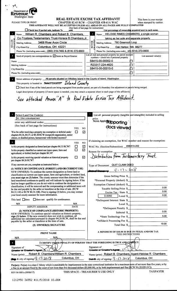 | 4 | 10/29/2018 | EZ | Easement | HISTORIC WHIDBEY | UNITED STATES OF AMERICA | | | $110,000.00 | 36503 | 4454350 |