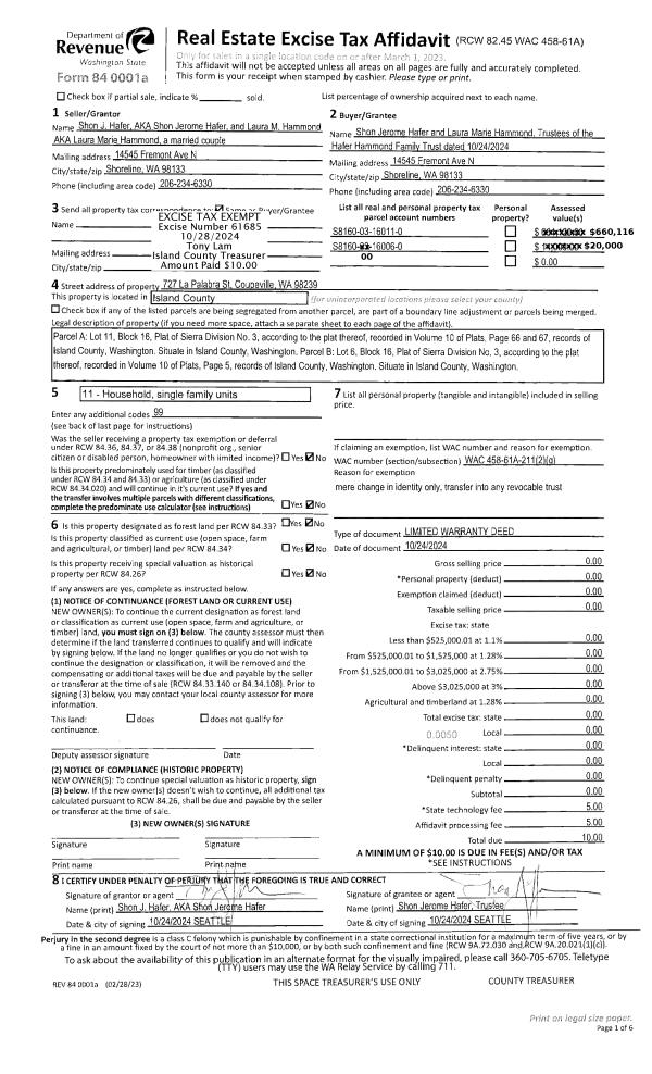 | Mailing Address: | 1081 SW HELLER ST OAK HARBOR, WA 98277 | % Ownership: | 100.0000000000% |