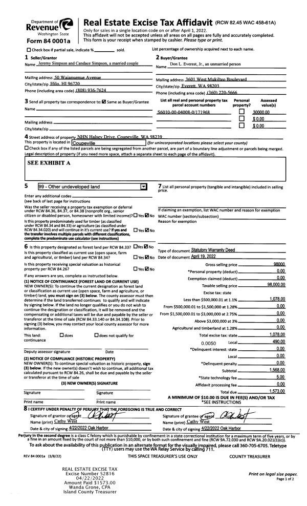 | Mailing Address: | 3146 GLACIER LN CAMANO ISLAND, WA 98282 | % Ownership: | 100.0000000000% |