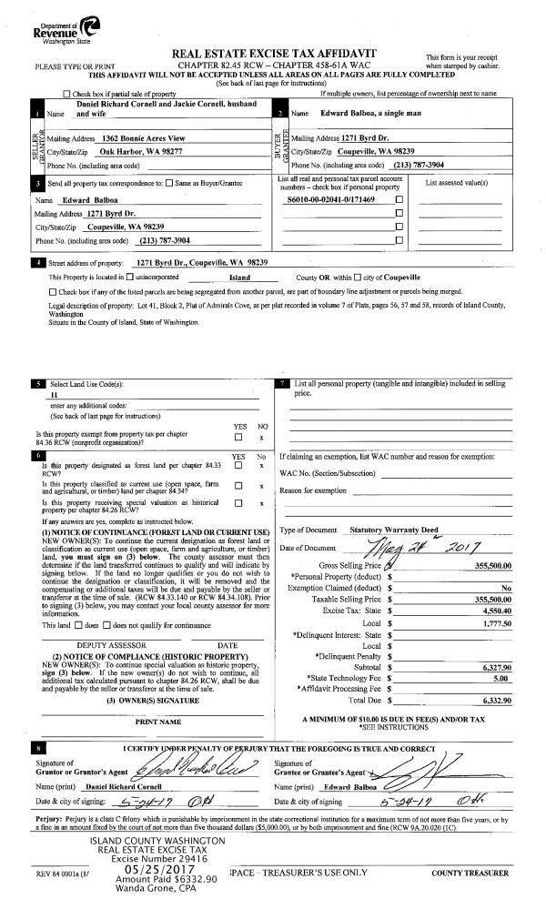 | Mailing Address: | 3133 GLACIER LN CAMANO ISLAND, WA 98282 | % Ownership: | 100.0000000000% |