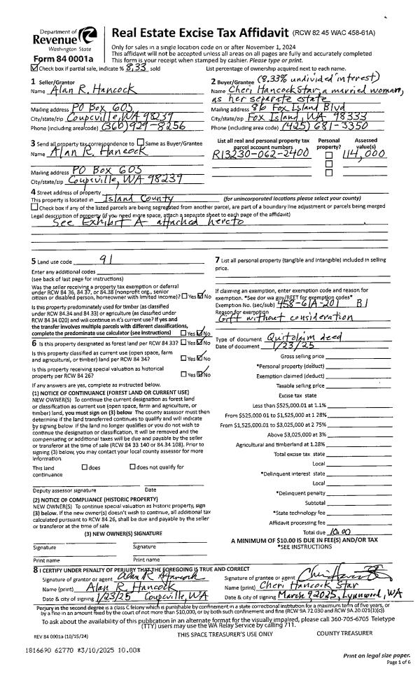 | 2 | 05/07/2015 | QCD | Quit Claim Deed | PORT GARDNER PROCESSING LLC | | | | | 19759 | 4379308 |