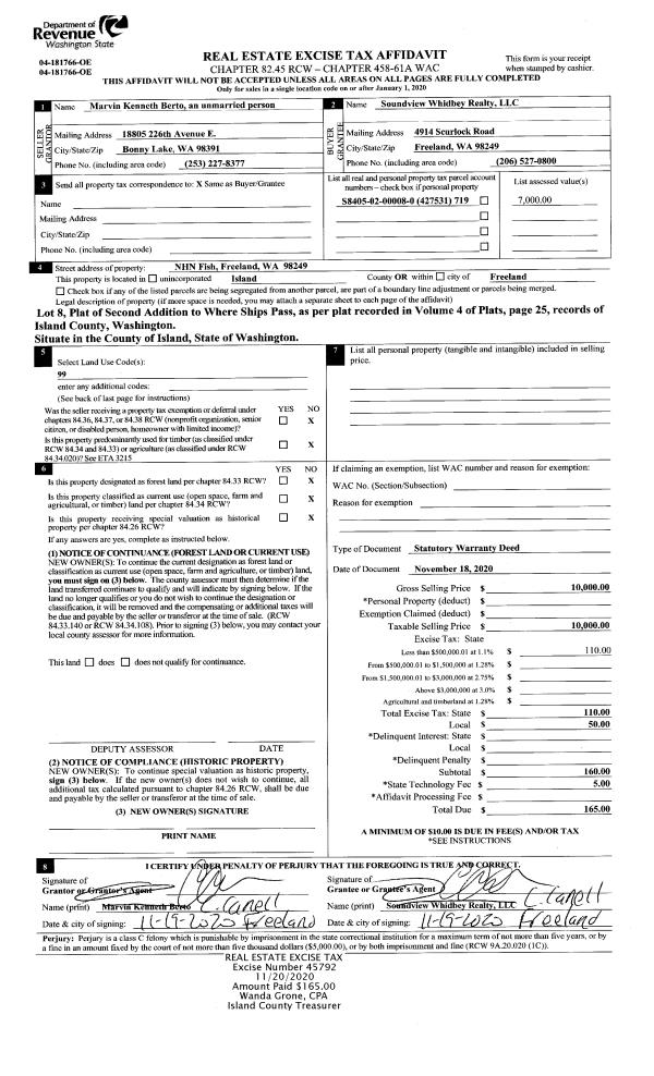 | NWHIDPRMT | P & R N Whidbey GEN | 0.2004466701 | $80,000 | $80,000 | $16.04 | | |