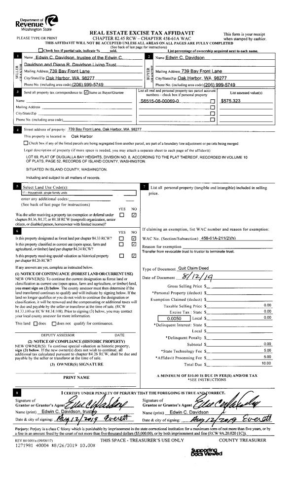 | Mailing Address: | 386 NE HARVEST DR OAK HARBOR, WA 98277 | % Ownership: | 100.0000000000% |