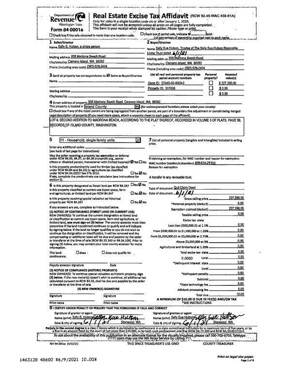 | Mailing Address: | 1462 CFENTRAL DR OAK HARBOR, WA 98277 | % Ownership: | 100.0000000000% |